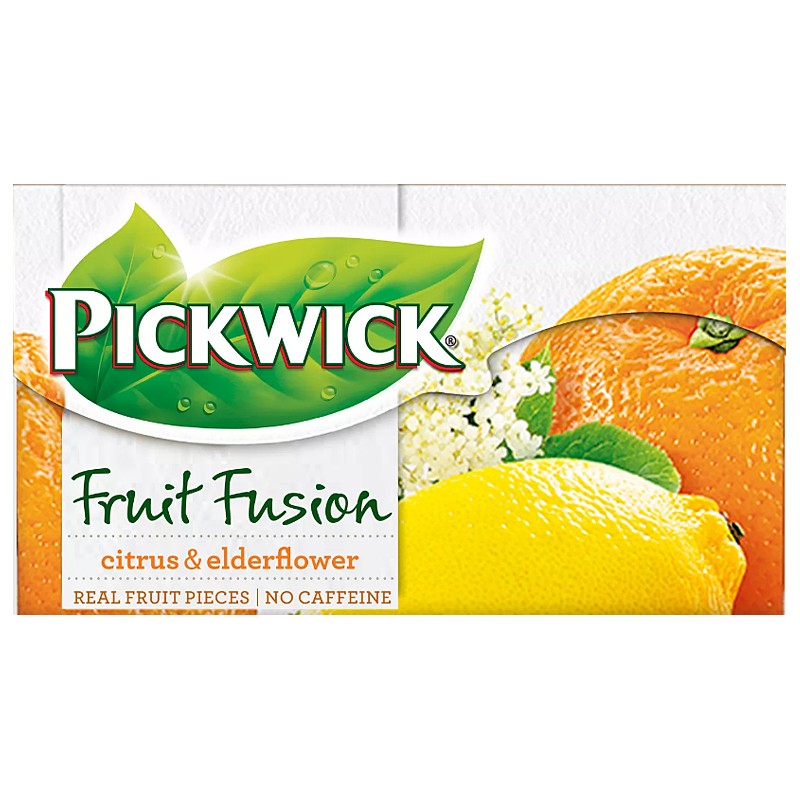 Попробуйте черный чай Pickwick Fruit Fusion Citrus & Elderflower (20 пакетиков) он содержит фруктово-травяной чай с отличным сочетанием цитрусовых и бузины. Не содержит кофеина.