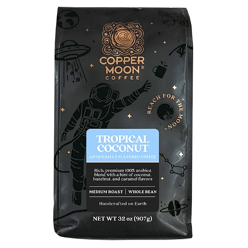Copper Moon Coffee Tropical Coconut - почніть свій день з чашки тропічної кокосової кави, щоб отримати додатковий заряд енергії та відчути себе в раю. Copper Moon Coffee Tropical Coconut - низькокисла суміш найкращих кавових зерен Центральної та Південної Америки, посилена нотками тропічного кокосу, фундуку та карамелі.