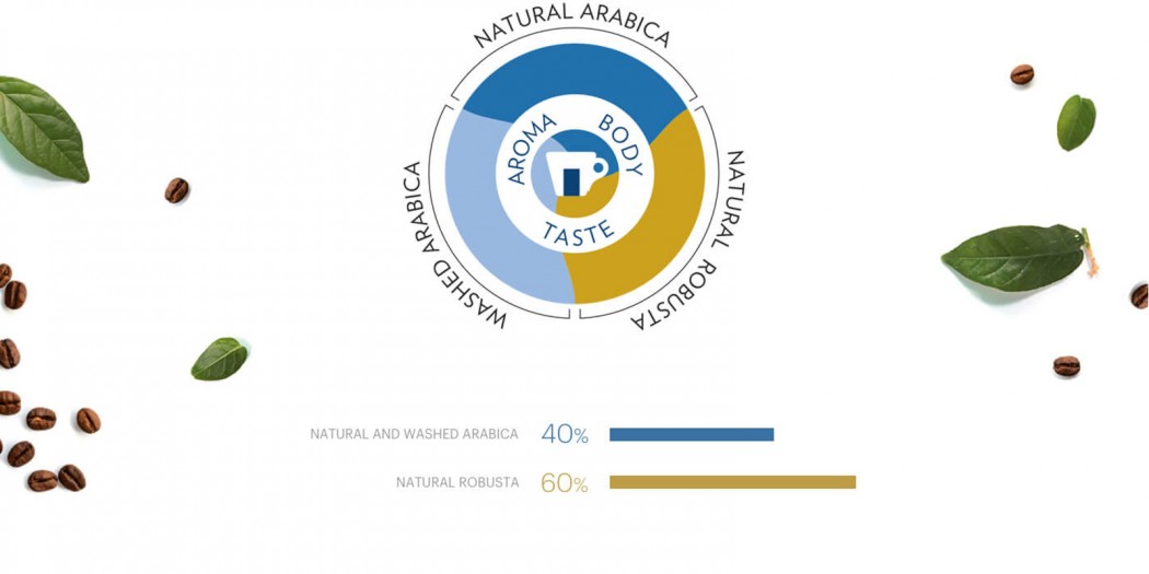Crema e Aroma Espresso Blue відрізняється цікавим балансом між арабікою і робустой. У складі Crema e Aroma вживають сорти арабіки з Центральної Америки, і робусти з Африки. Характеризується яскраво вираженим смаком і довгим приємним післясмаком.