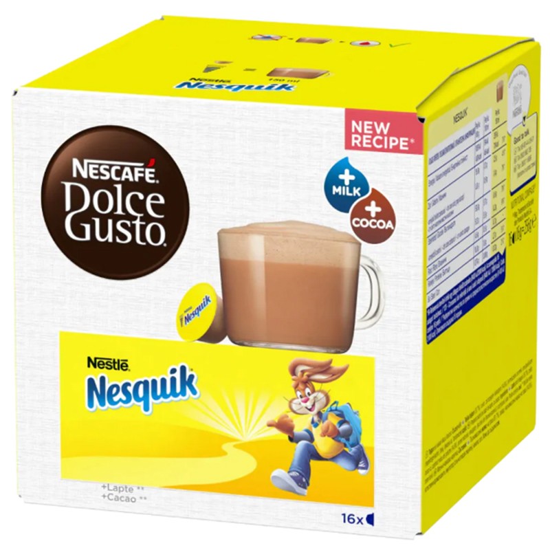 Спробуйте Nescafe Dolce Gusto Nesquik (16 шт.) - Немає нічого краще чашечки зігріваючого шоколадно-молочного коктейлю Nesquik. Насолоджуйтеся незрівнянним смаком, і неважливо, чи готуєте ви його дитині або ж самі вирішили на мить повернутися у дитинство.