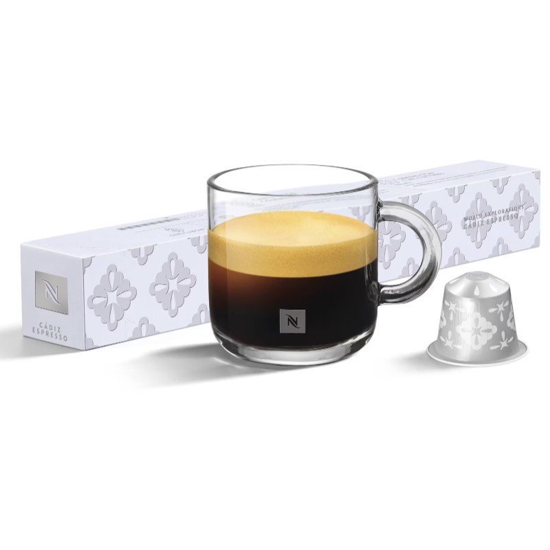 Спробуйте Nespresso Cadiz Espresso (10 шт.) і насолоджуйтеся кави в іспанському стилі. World Explorations Cádiz Espresso передає смак життя у цьому сонячному андалузькому портовому місті. Суміш бразильської арабіки та індійської робусти з солодовими нотками зерна та м'якими нотками карамелі сприяє розслабленню.