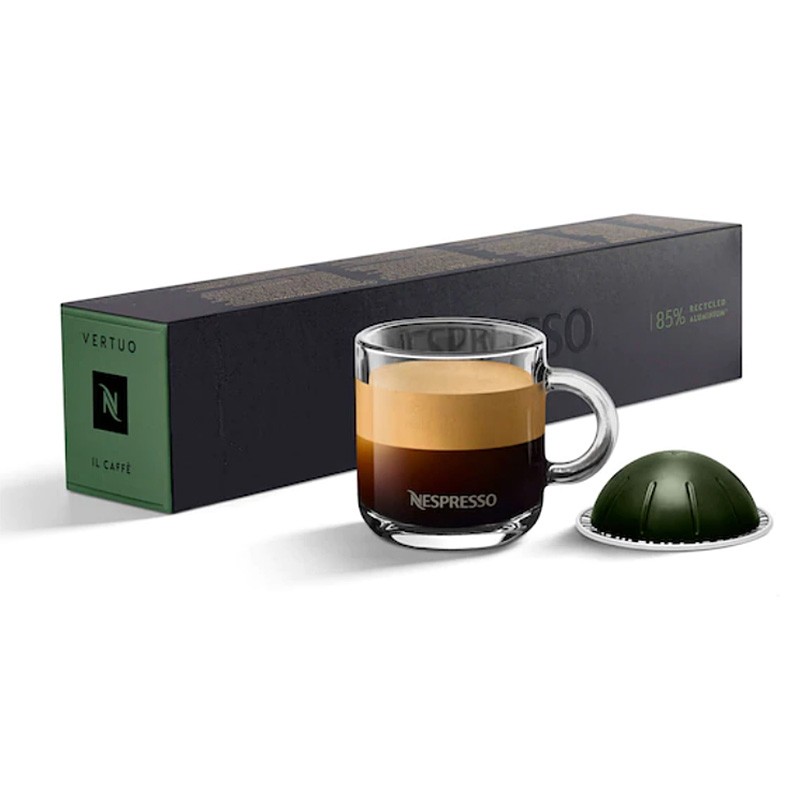 Спробуйте Nespresso Vertuo Il Caffe (10 шт.) і насолодіться цим еспресо. Il Caffe найкраща відповідь на потреби всіх кавоманів, що люблять міцний еспресо, які в кожному ковтку, окрім очевидної порції енергії, намагаються знайти смакові та ароматичні сюрпризи, які потім не забудуться