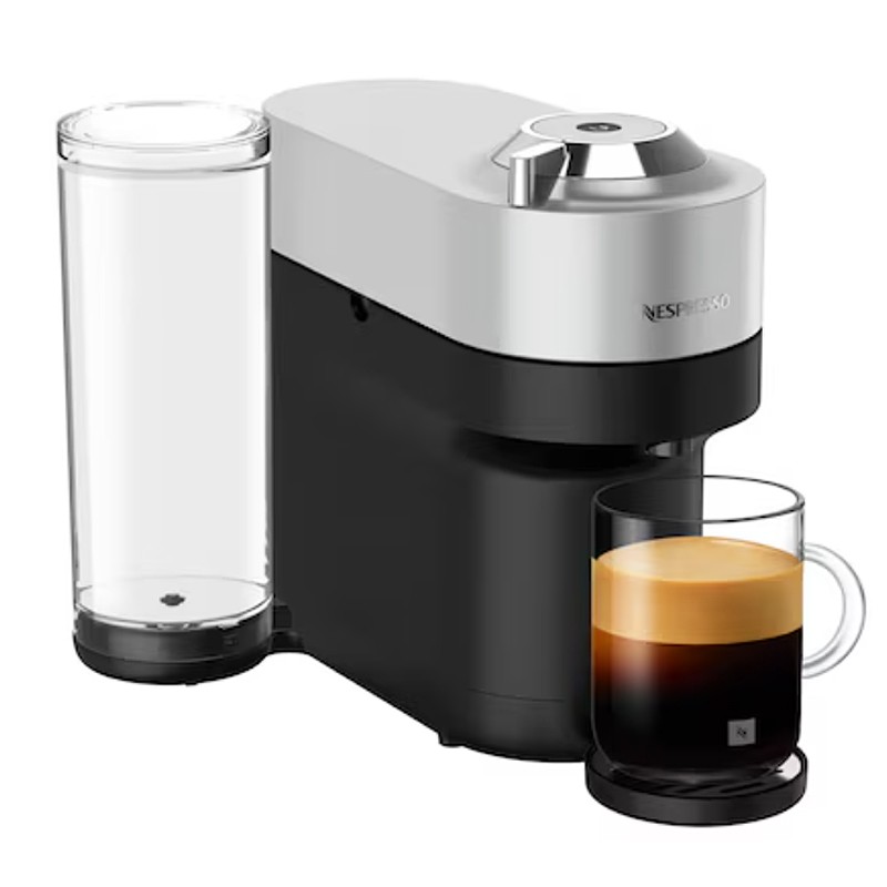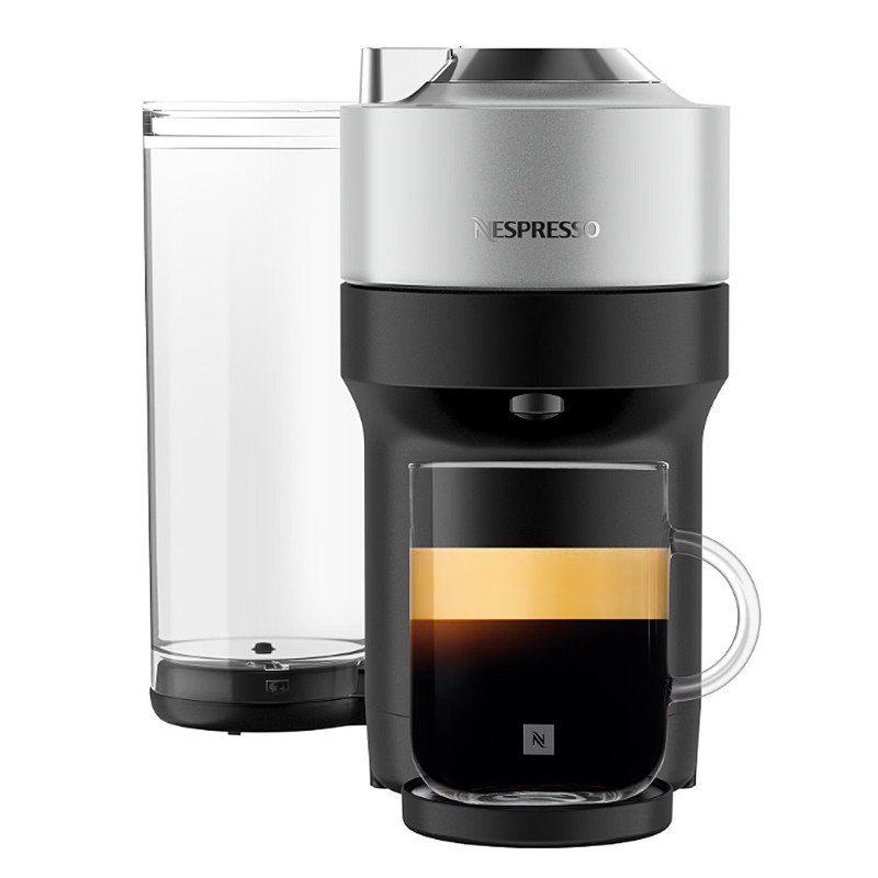 Капсульна кавоварка Nespresso Vertuo POP+ Silver виконана в стилі «ретро». У кавомашині зручна система установки капсул і викиду капсул, автоматичне програмування кількість води на порцію. Регульована висота підставки для чашок дозволяє використовувати чашки для еспресо і високі келихи для латте макіато. Також кавоварка має режим енергозбереження і авто через 30 хвилин з моменту останнього приготування кави. Є автоматичне очищення від накипу.