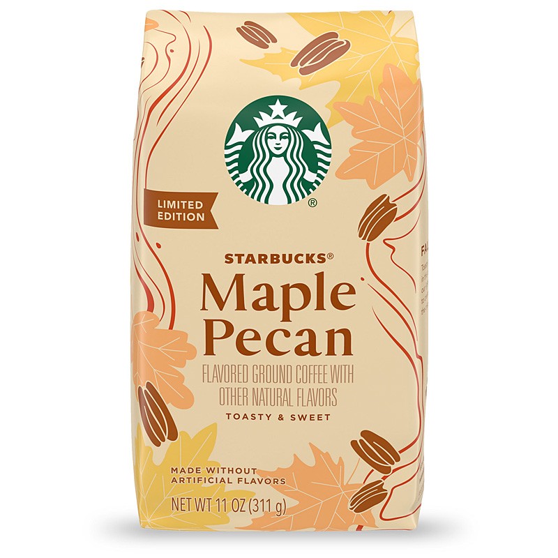 Кава Starbucks Maple Pecan виготовлений з високоякісних мелених кавових зерен 100% Арабіки у поєднанні з натуральними ароматизаторами. Кава Starbucks Maple Pecan - це сезонна пропозиція обмеженого випуску, в якій присутні підсмажені нотки горіха пекан і солодкий клен у чудово затишній каві.